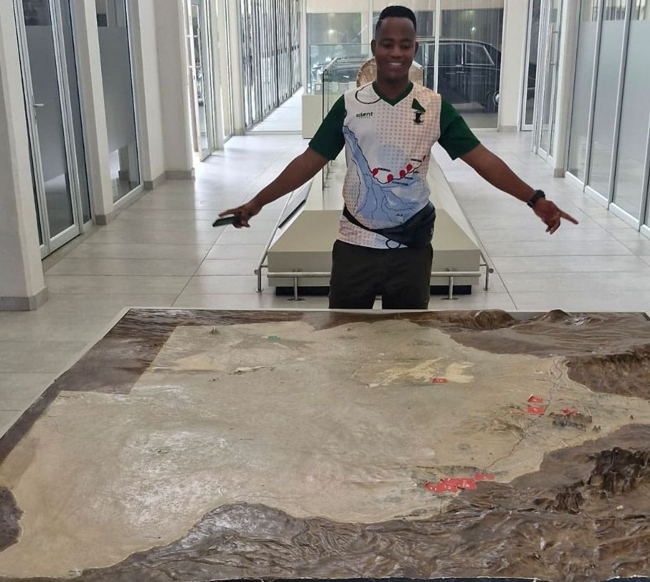 Kebonemotse Amos, photographed at the Cartographic Section of the Botswana National Museum, Gaborone, in October 2025, by Eunice Norwebb. Business Marketing & Strategist| Indigenous Bio-Cultural Voice| Cultural Custodian (Khwe/ San) | Community Mobilization & Climate Change Engagements