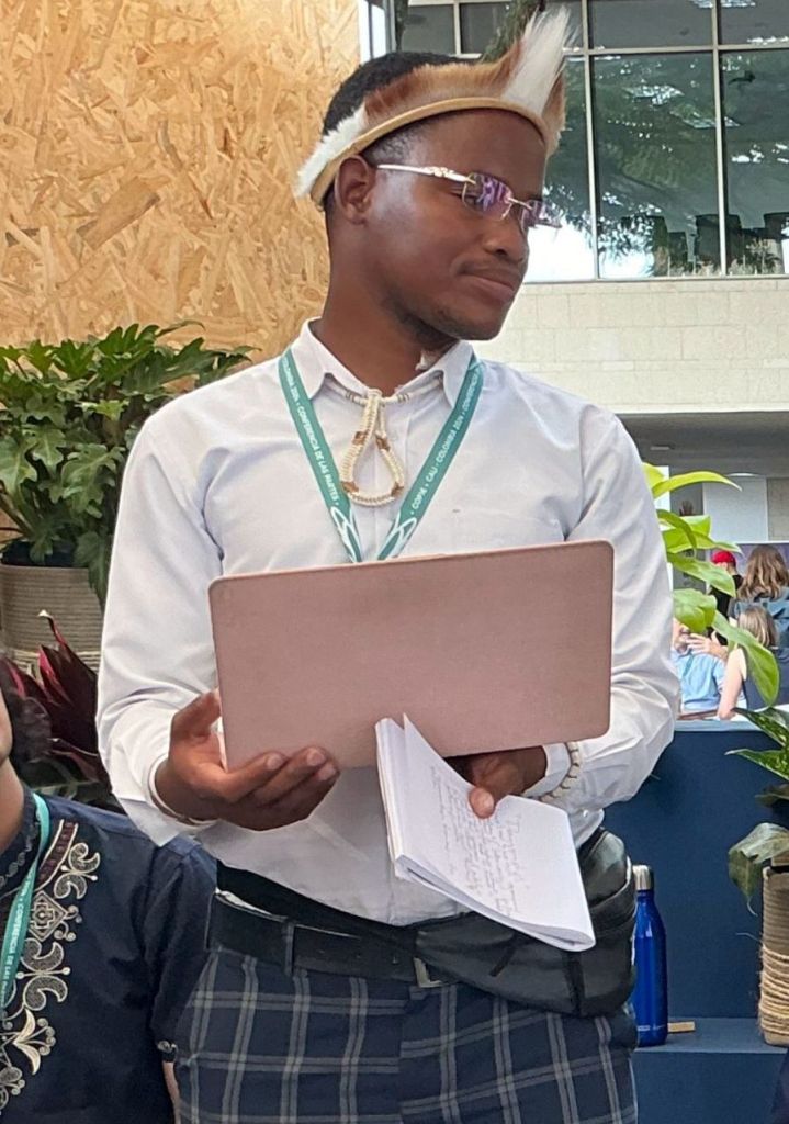 In October 2024, in the Green Zone, Cali, Kebonemotse Amos participated in a side event that contributed to the UNESCO Green Citizens article titled “When Nature Is Part of Culture. Photo by Jeffrey Tsam ‘Namibia Indigenous Youth Representative’